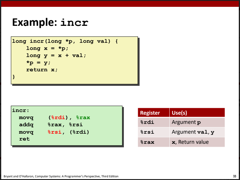2. incr() 함수 호출에 필요한 인자를 레지스터로 넘겨주고 있다.