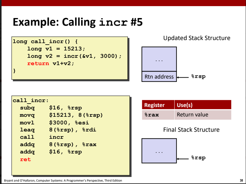 5. ret instruction을 통해서 call_incr()를 호출해줬던 또 다른 caller가 스택에 저장해둔 return address로 jump한다.