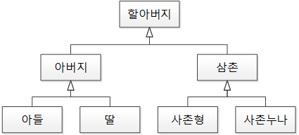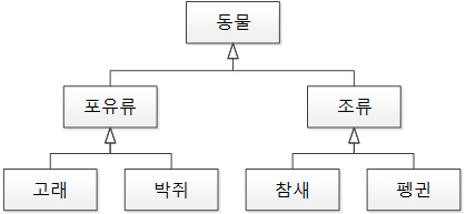 위의 예시에서는 할아버지 = 사촌형; 처럼 상위형 객체 참조 변수에 대입해 상위 클래스의 인스턴스 역할을 하는데 문제가 있다. 하지만 아래 예시에서는 동물 = 참새; 처럼 상위 클래스의 인스턴스 역할을 하는데 문제 없다.