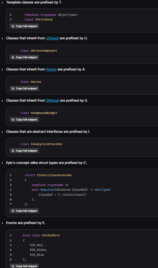 A : AActor를 상속받는 클래스(Actor는 UObject를 상속받긴 하지만 예외적으로 A로 시작)