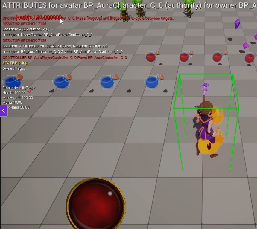 불에 들어가면 HP가 감소해야 하는데 감소하지 않는 것을 볼 수 있다.