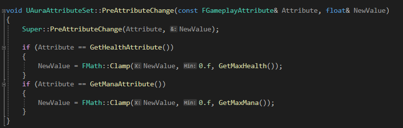 이유는 지금 HP에 대한 Clamp 처리를 PreAttributeChange에서 해주고 있기 때문이다