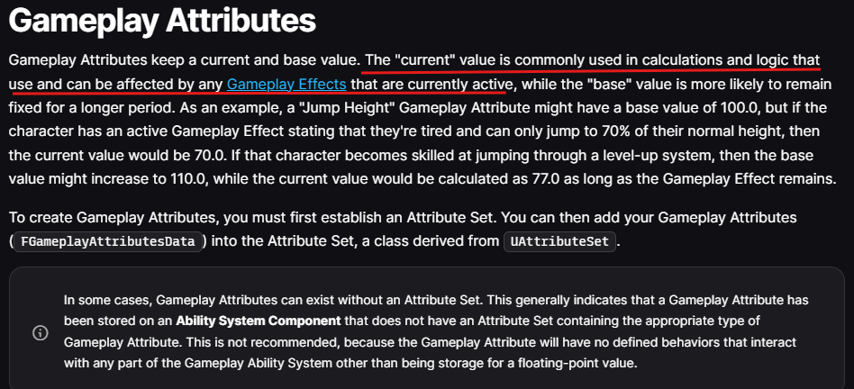 일반적인 GameplayEffect의 로직과 계산에 사용되는 값은 BaseValue 기준이 아니고 CurrentValue가 기준이다.