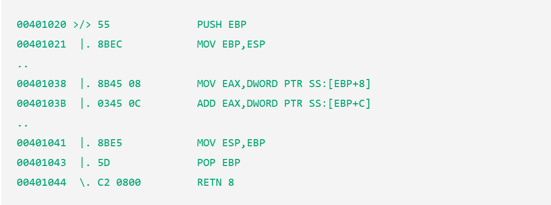 정말 main에서 ESP에 8을 더해주면서 caller가 스택을 정리해주는 것을 확인할 수 있다.