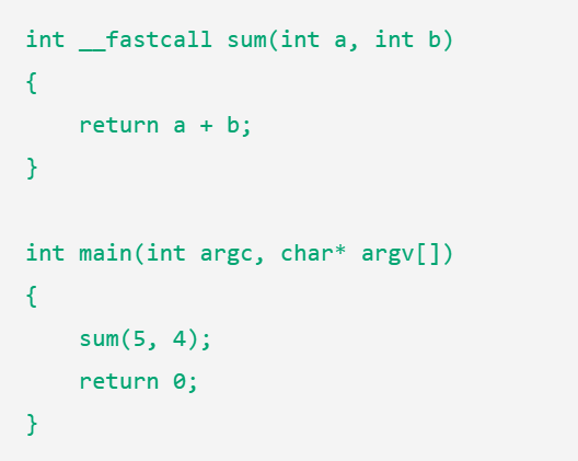 이름에서부터 알 수 있듯이, 함수 호출이 다른 호출 규약들보다 빠르다. 그 이유는 스택보다 접근이 빠른 레지스터를 이용하기 때문이다.