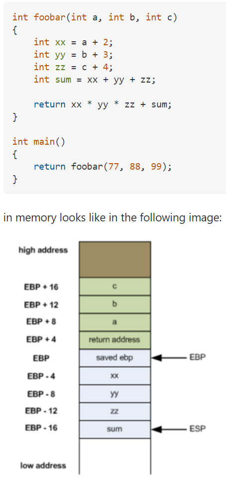 함수 호출 규약의 종류에 따라 인자를 오른쪽에서 왼쪽순으로 전달할건지, 왼쪽에서 오른쪽으로 전달할건지 달라지며, stack을 이용할것인지, stack®ister 둘다 이용할것인지도 달라지며, 함수가 종료되고 stack frame을 누가 정리할 것인지도 달라진다. 함수 호출 규약은 아키텍처마다(ex. x86, ARM 등) 다를 수 있으며, high-level language(ex. C, C++, JAVA 등)마다, 컴파일러마다 달라질 수 있다. 이 글에서 설명하는 함수 호출 규약은 x86 아키텍쳐에서의 함수 호출 규약이다.
