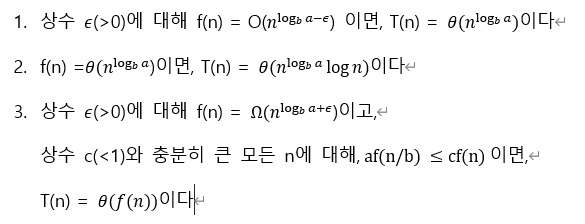 시간 복잡도 T(n) = aT(n/b) + f(n)으로 정의될 때,