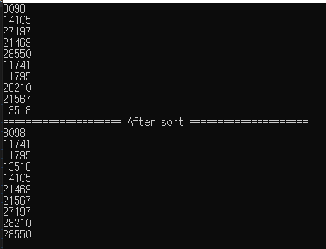 std::cout << "===================== After sort =====================" << std::endl;