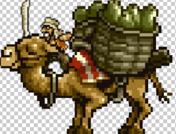 깊이 버퍼 - 백버퍼와 동일한 크기를 가진, 깊이 값을 가진 버퍼이다. 값이 1이라는 것은 가장 멀리 있는 것을 의미하고, 0은 가장 가까이 있는 것을 의미한다. 원래 깊이 버퍼는 모든 값을 1이 초기화 되어 있다. 깊이 버퍼를 통해서 출력되는 순서와 상관없이 화면에서 가려질 부분과 보여질 부분을 각 픽셀마다 선별해서 출력할 수 있다. 예를 들어서 아래 그림처럼 낙타에 병사의 일부가 가려져 있는 상황으로 가정해보자