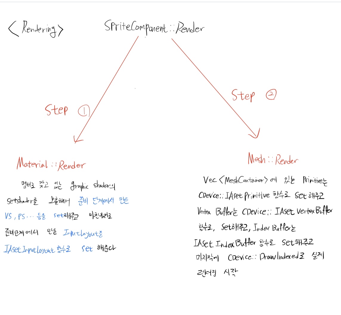 아래 필기는 Instancing을 하지 않는 가장 기본적인 렌더링 과정을 정리한 것임.